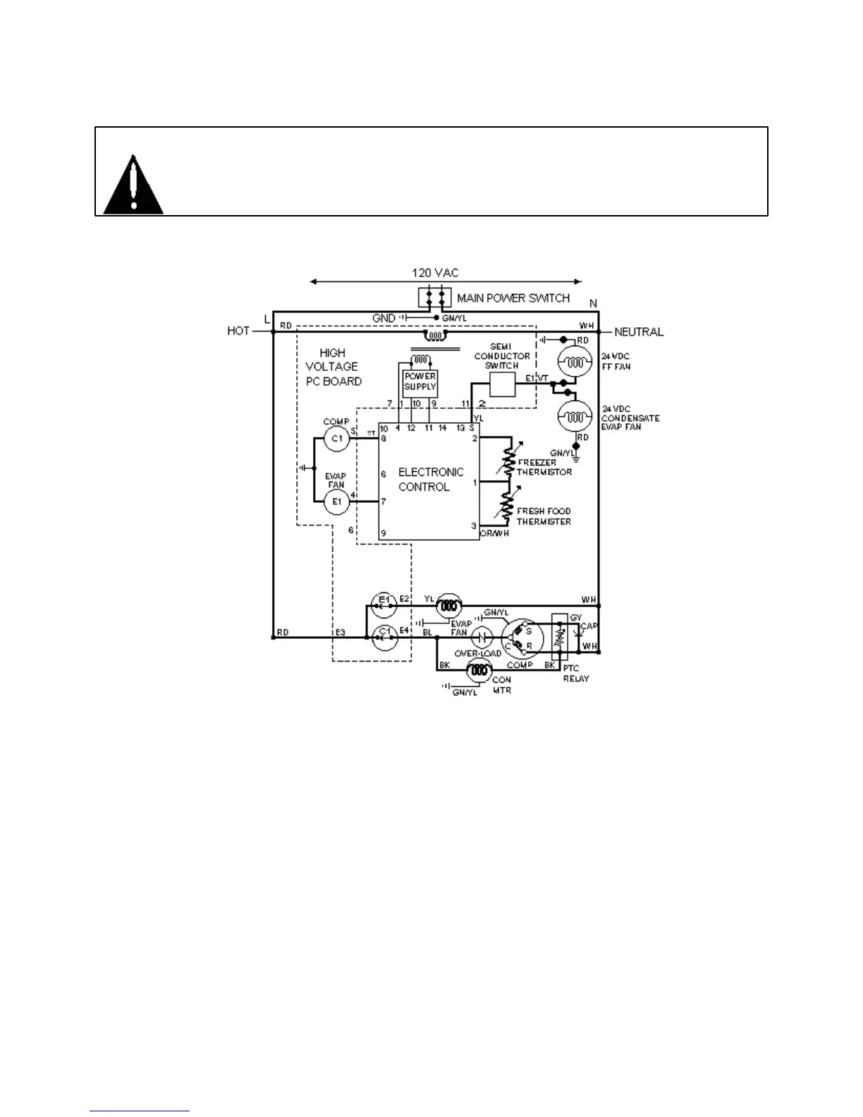 disconnect power to refrigerator using power switch before servicing. Wires removed