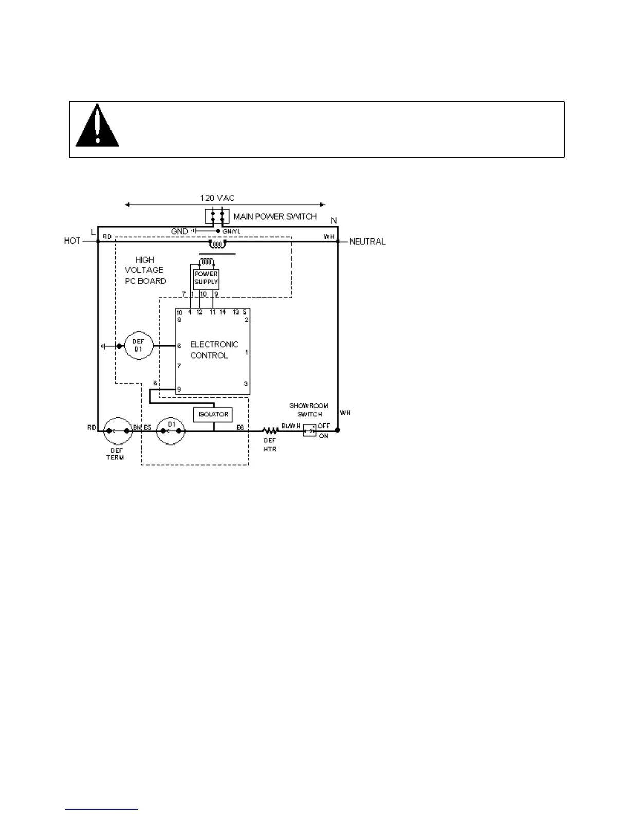 Isolator, which is part of high voltage PC board, recognizes presence of line voltage to defrost heater and