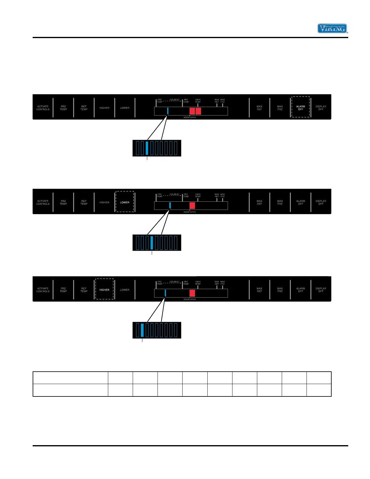 Press “ALARM OFF” pad. Door open indicator will glow. One temperature indicator should glow indicating