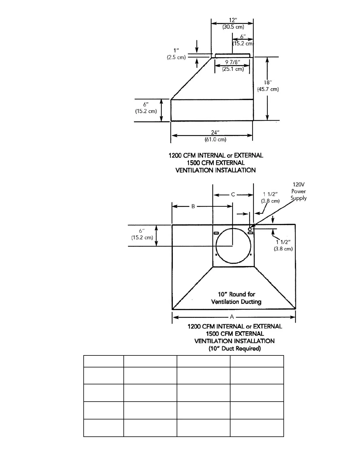 WALL HOOD DIMENSIONS