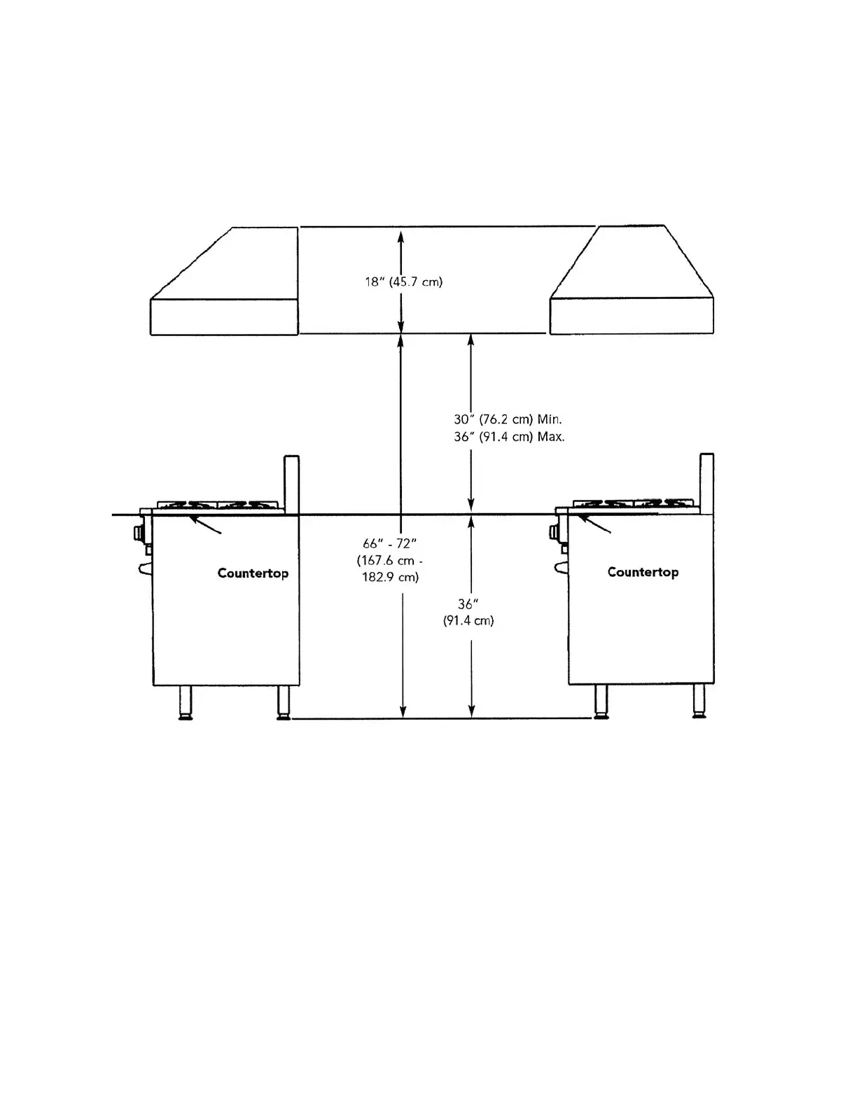 of the hood should never be more than 72” (182.9 cm) above the floor or more than 36” (91.4 cm) above the