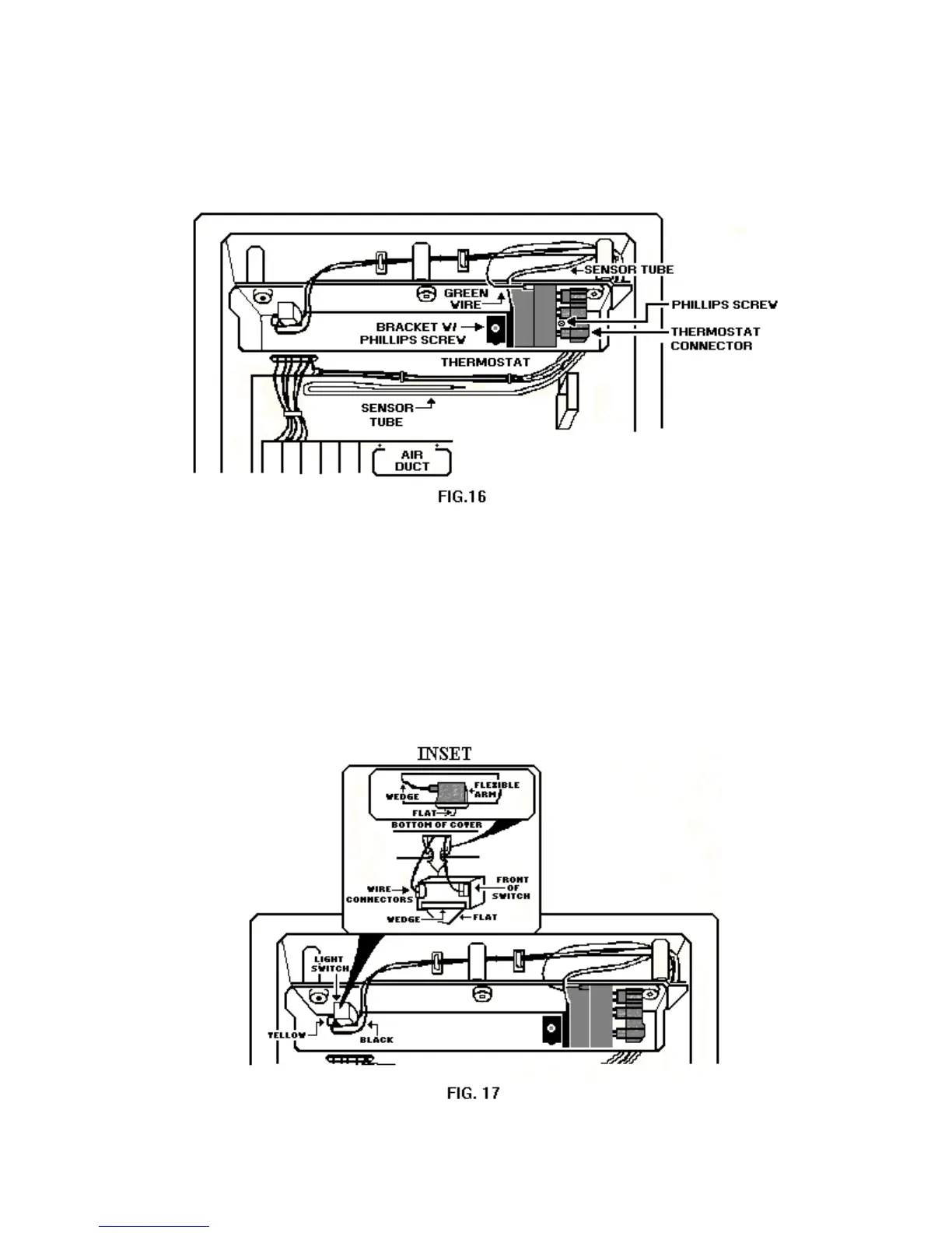 4. Carefully remove the thermostat and the freezer sensor tube from the freezer compartment.