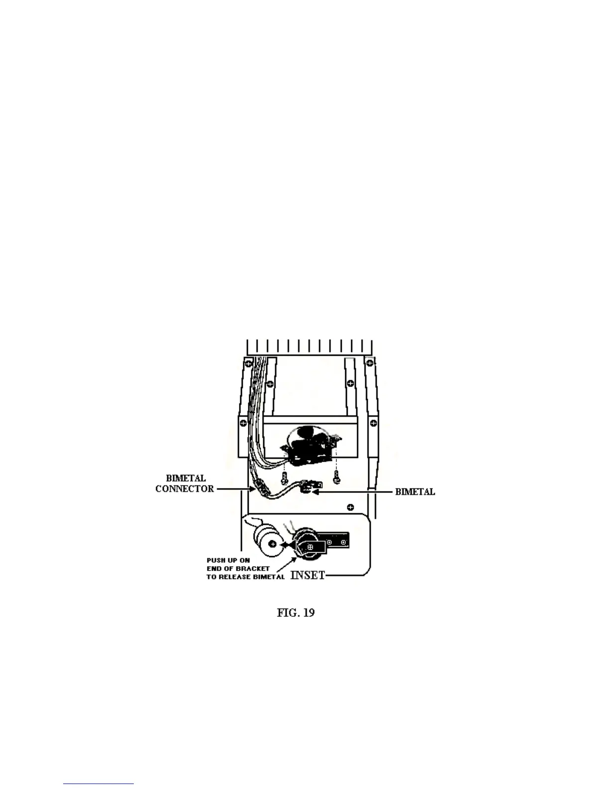 1. Push up on the bimetal bracket just enough to release the locator pin on the bimetal and remove