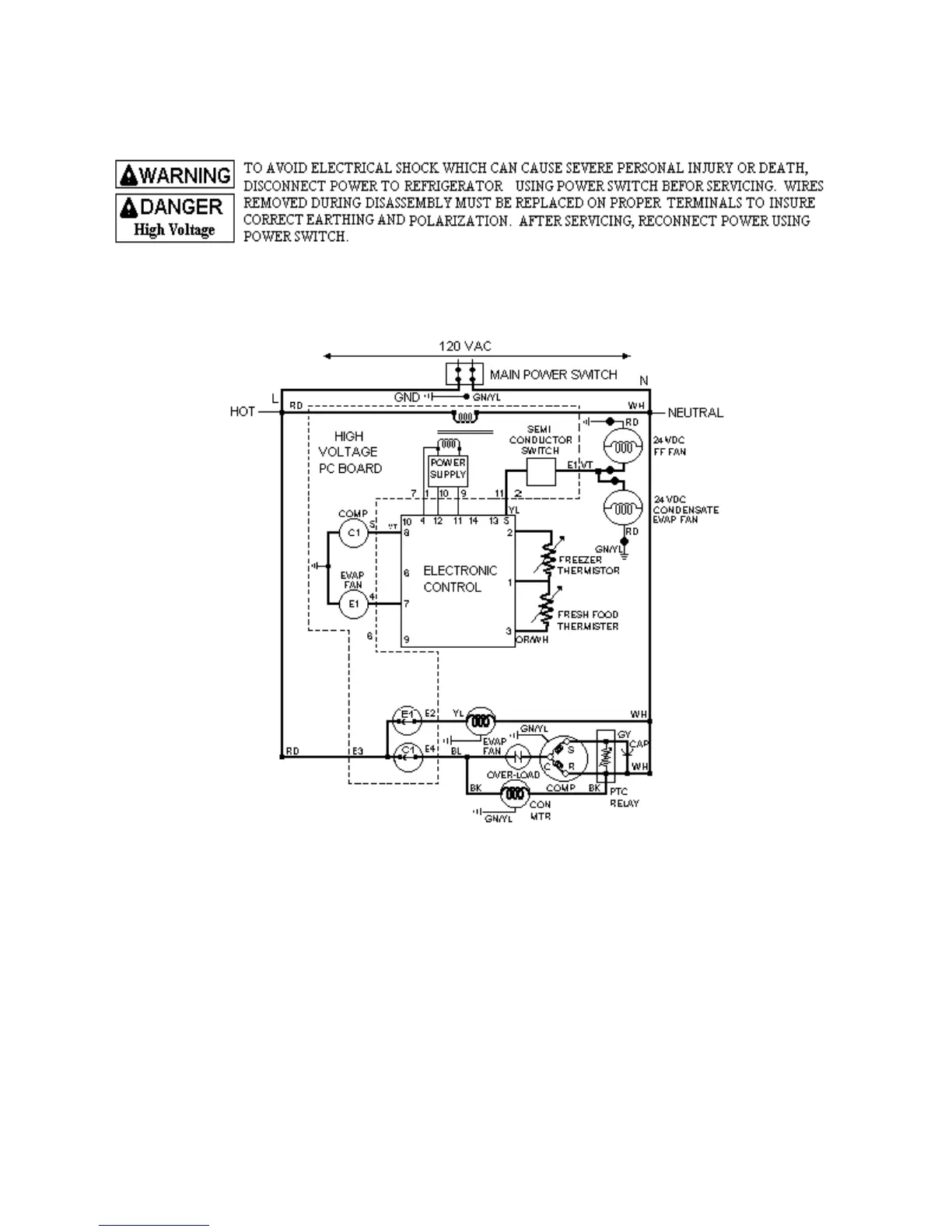 and the electronic signals for compressor / condenser