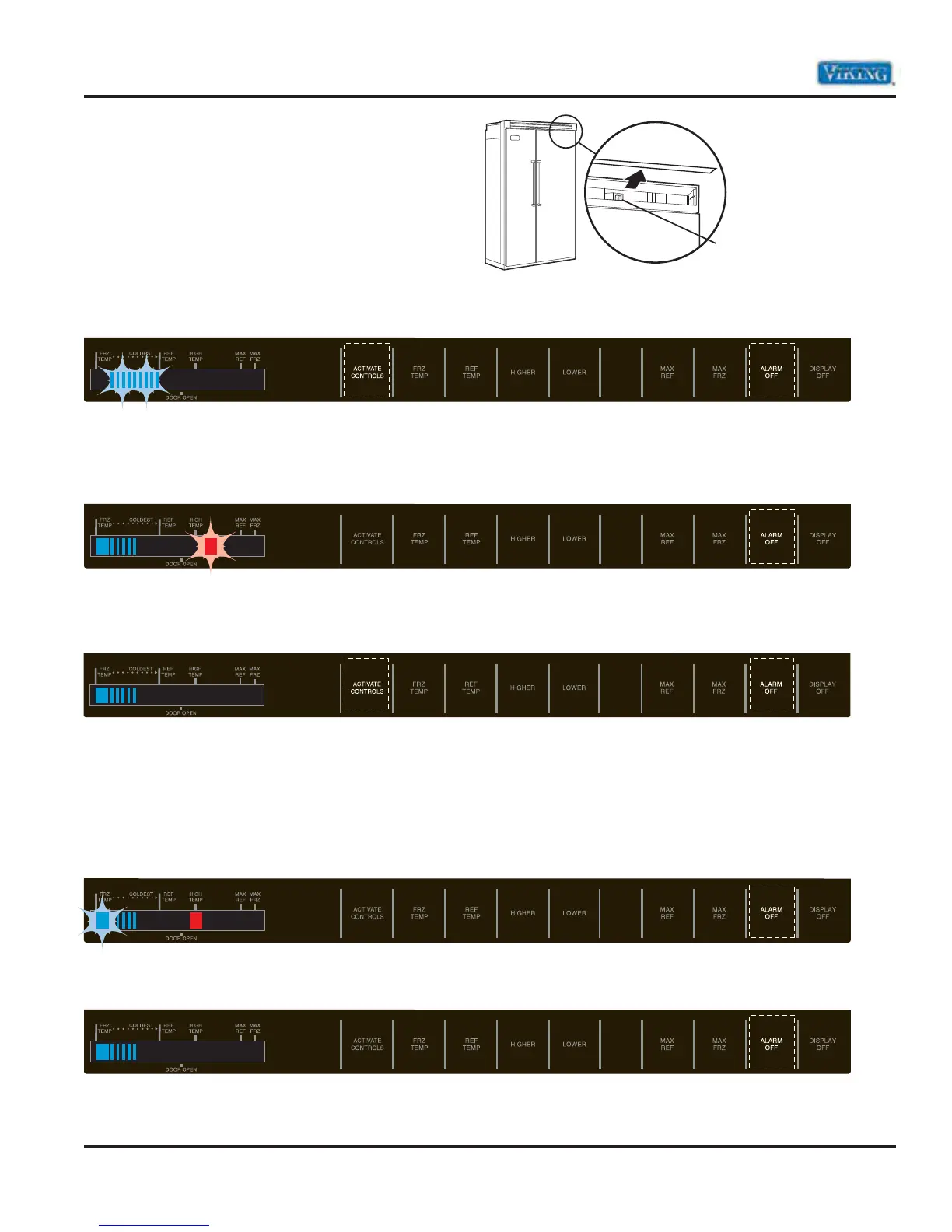temperature indicator lights will flash until “ALARM OFF” or “ACTIVATE CONTROLS” is pressed.