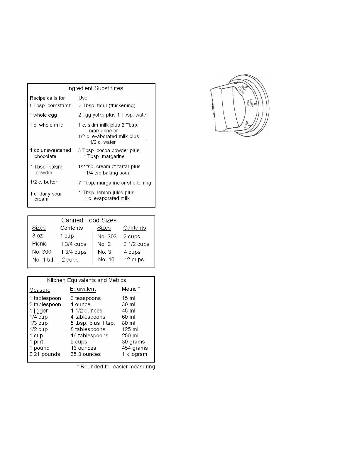 COOKING SUBSTITUTE CHARTS