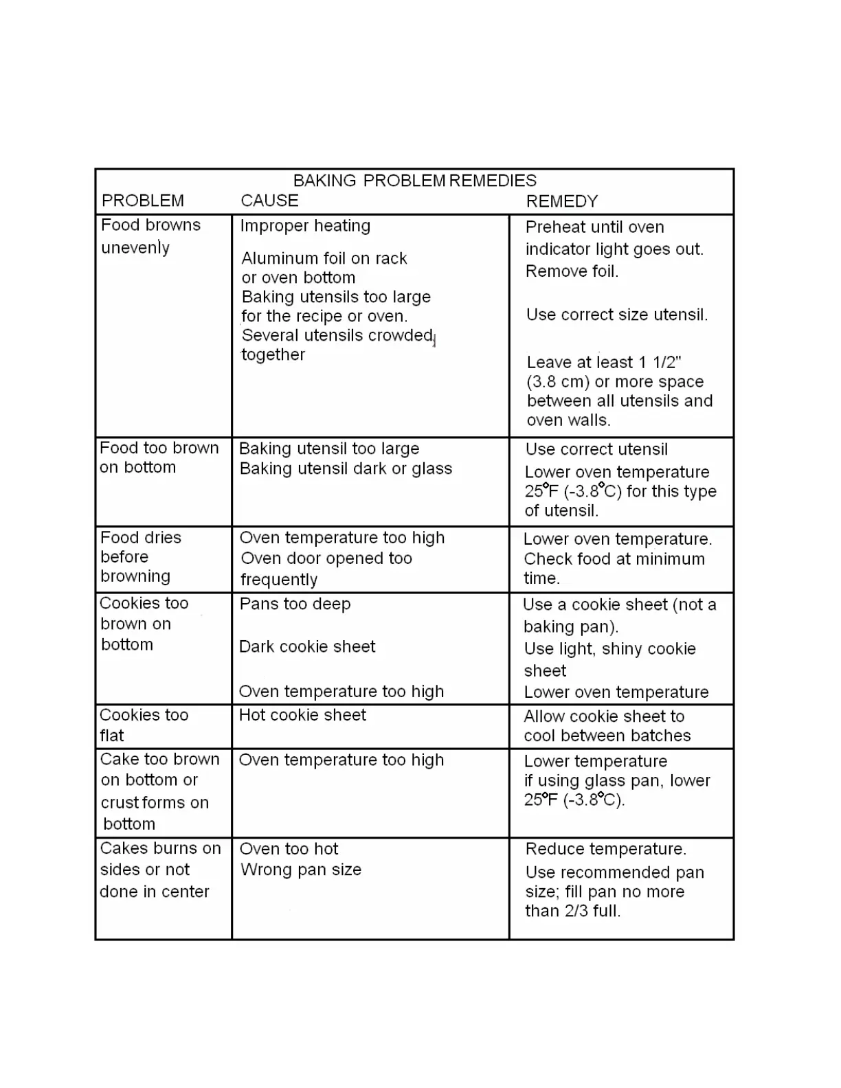 BAKING PROBLEM REMEDIES