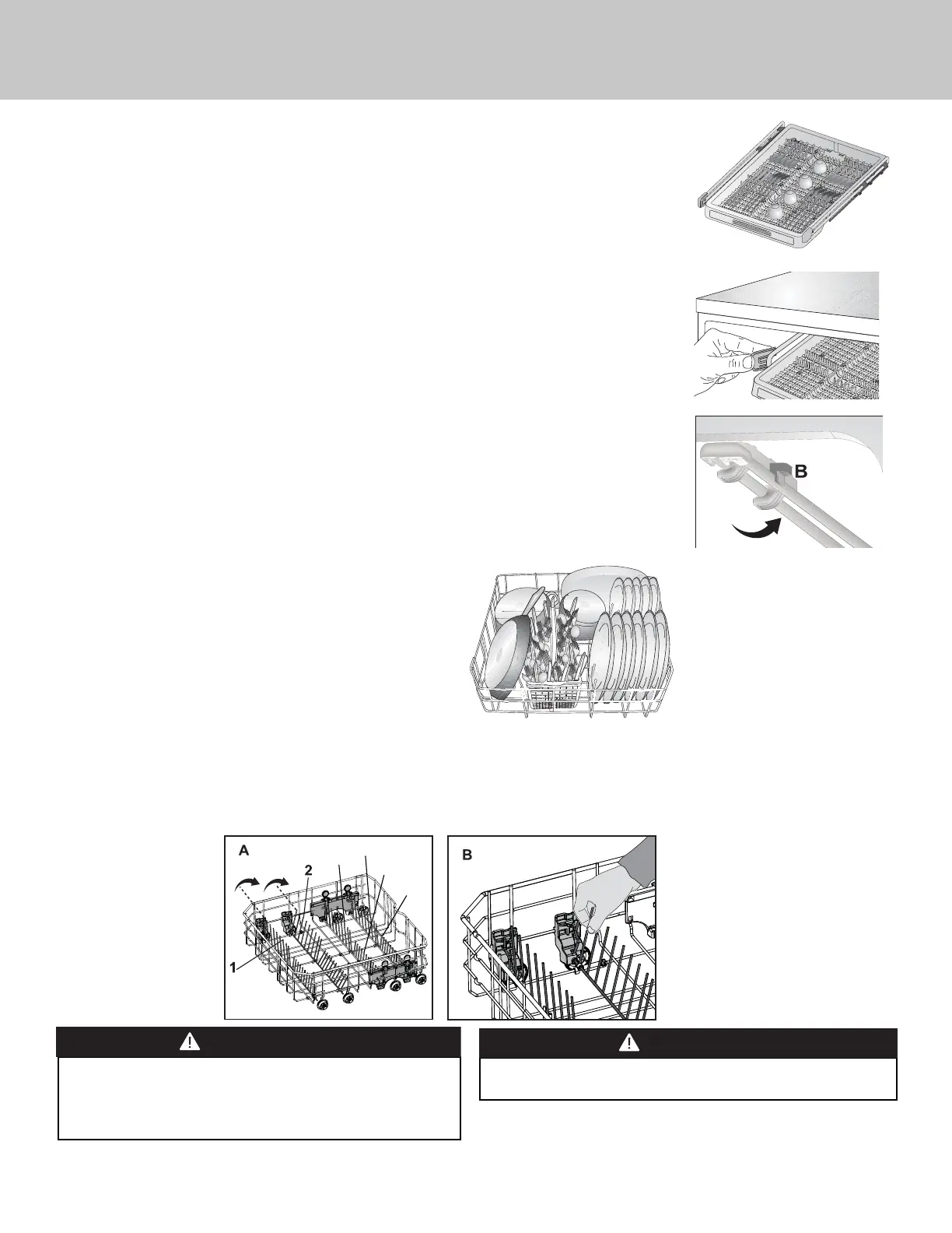 Use the lower rack for plates, bowls, pots, etc.