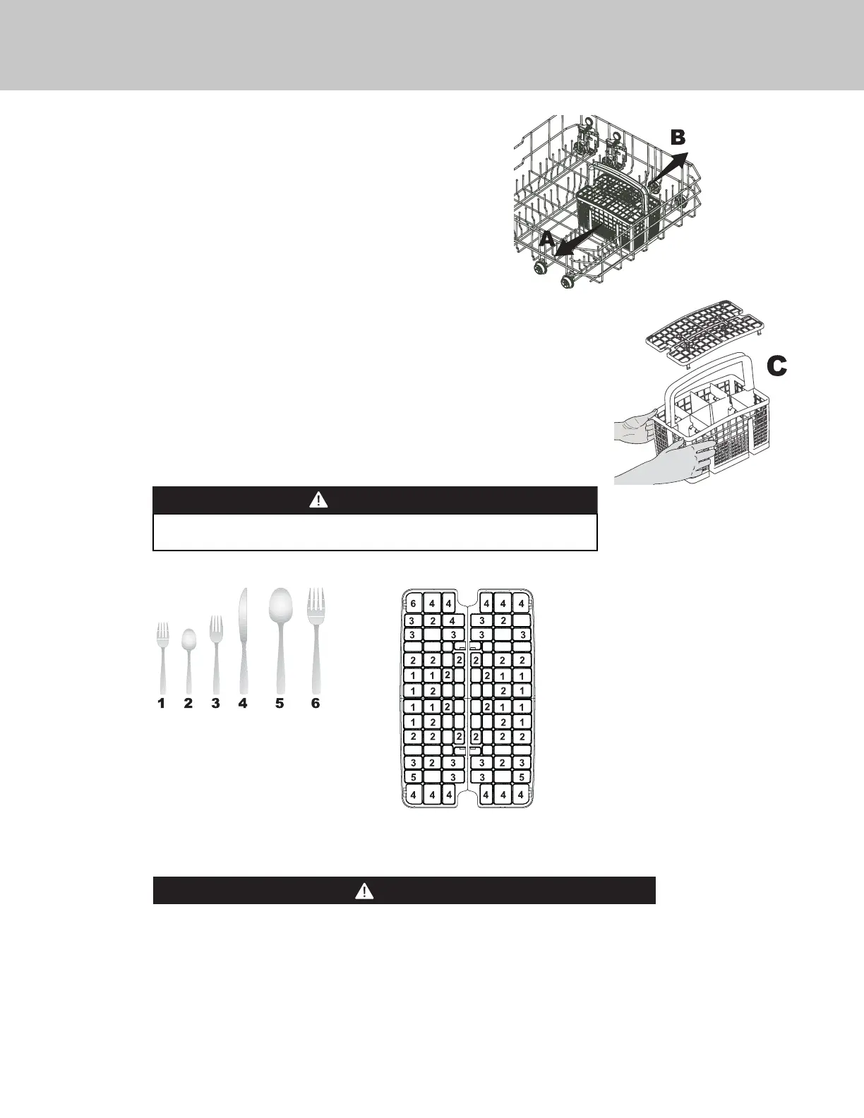 Use the basket inset C for your cutlery so that all items in the basket are surrounded by a