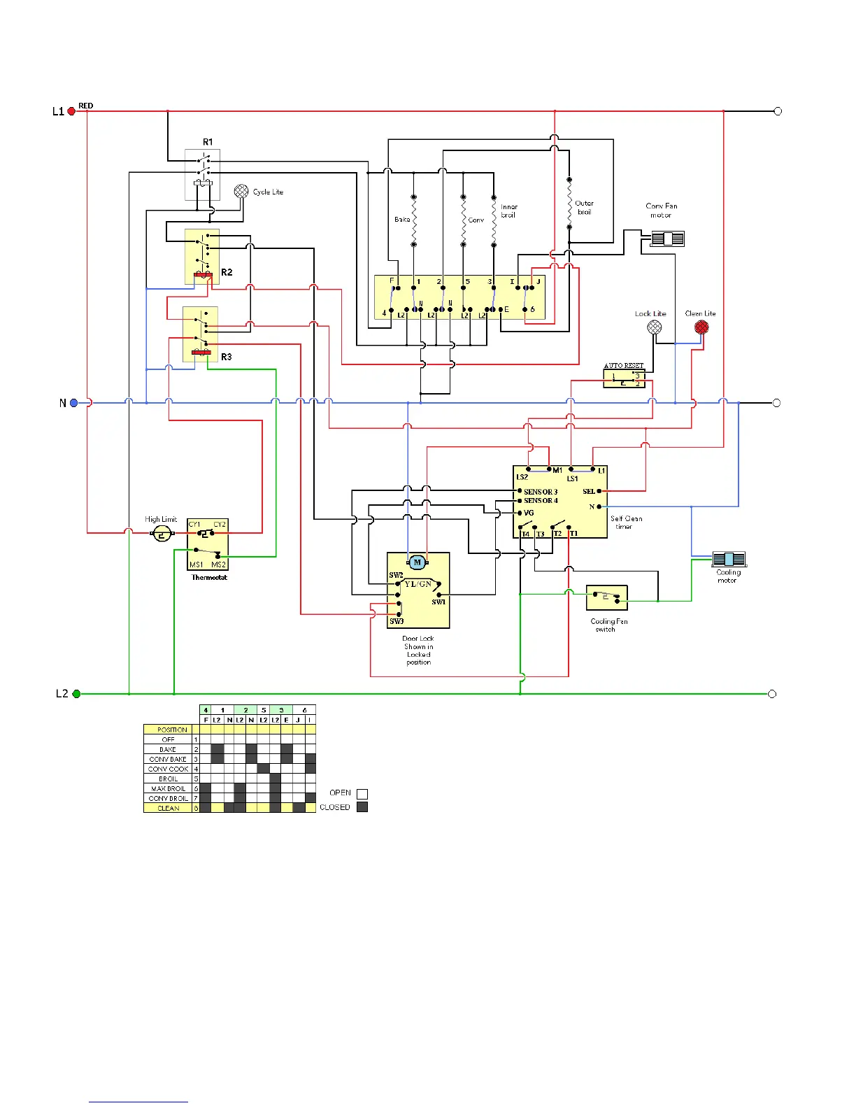 Auto Reset closes between #1 (com) and #2 (N.C.) allowing L1 power to now flow to the Door