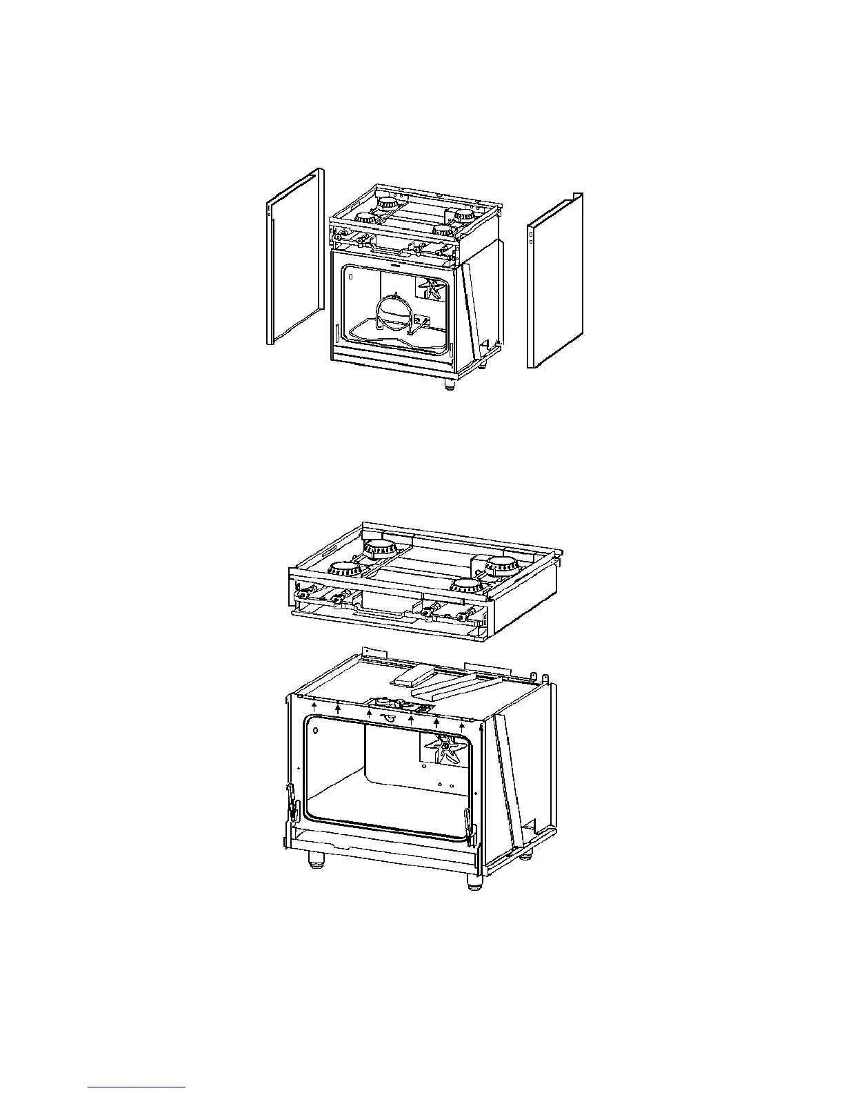 Remove the 6 screws along the upper frame above the door that hold the burner box assembly to the oven body. Lift the
