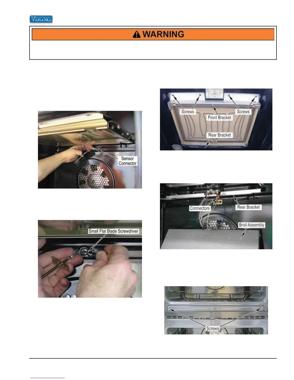 2. Remove four screws that hold front bracket and broil
