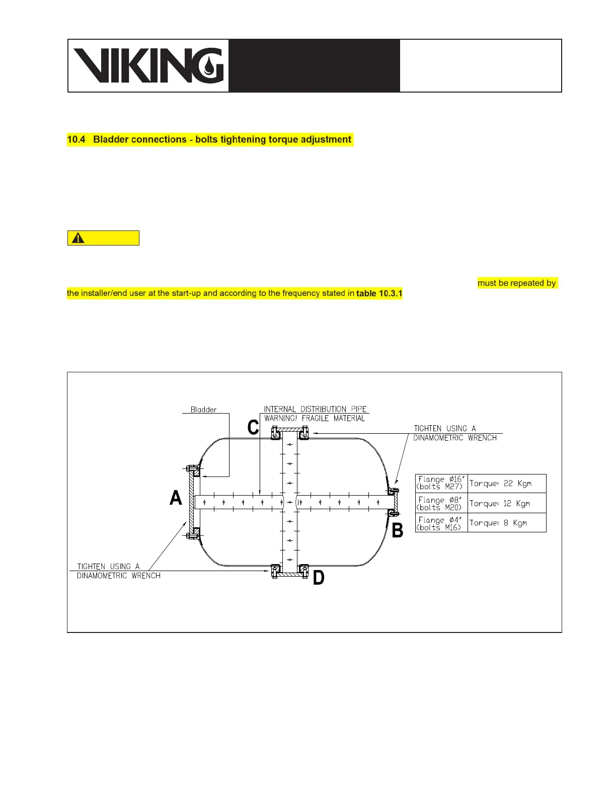 10.4 Bladder connections - bolts tightening torque adjustment