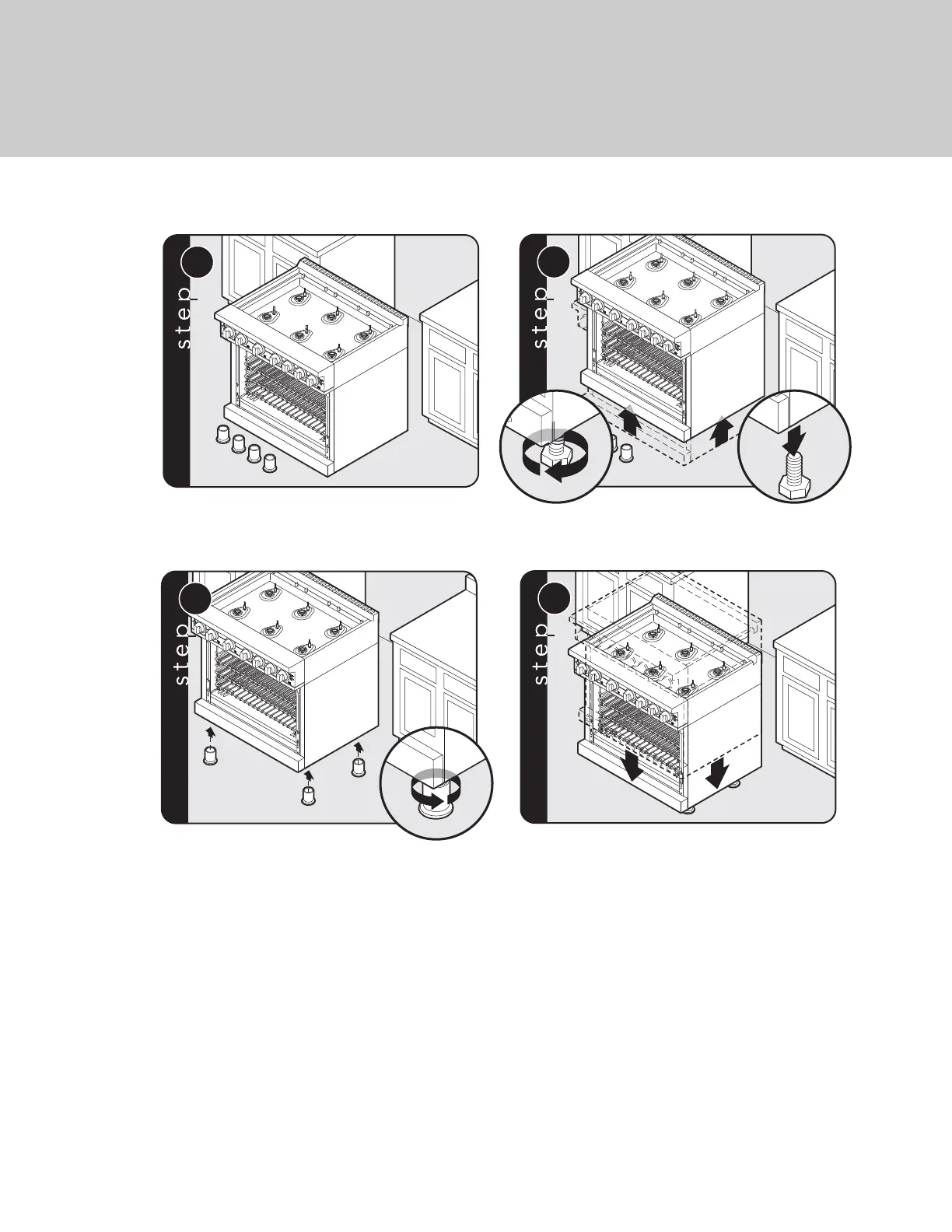 The 48” W. ranges have two additional legs located in the