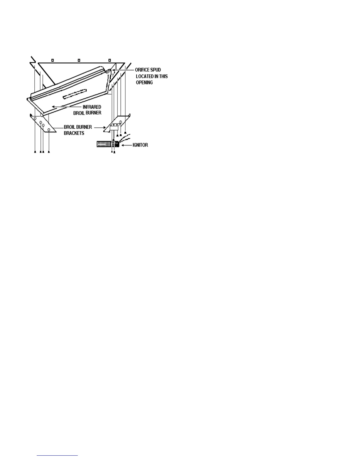 9. Remove the broil burner mounting screws securing