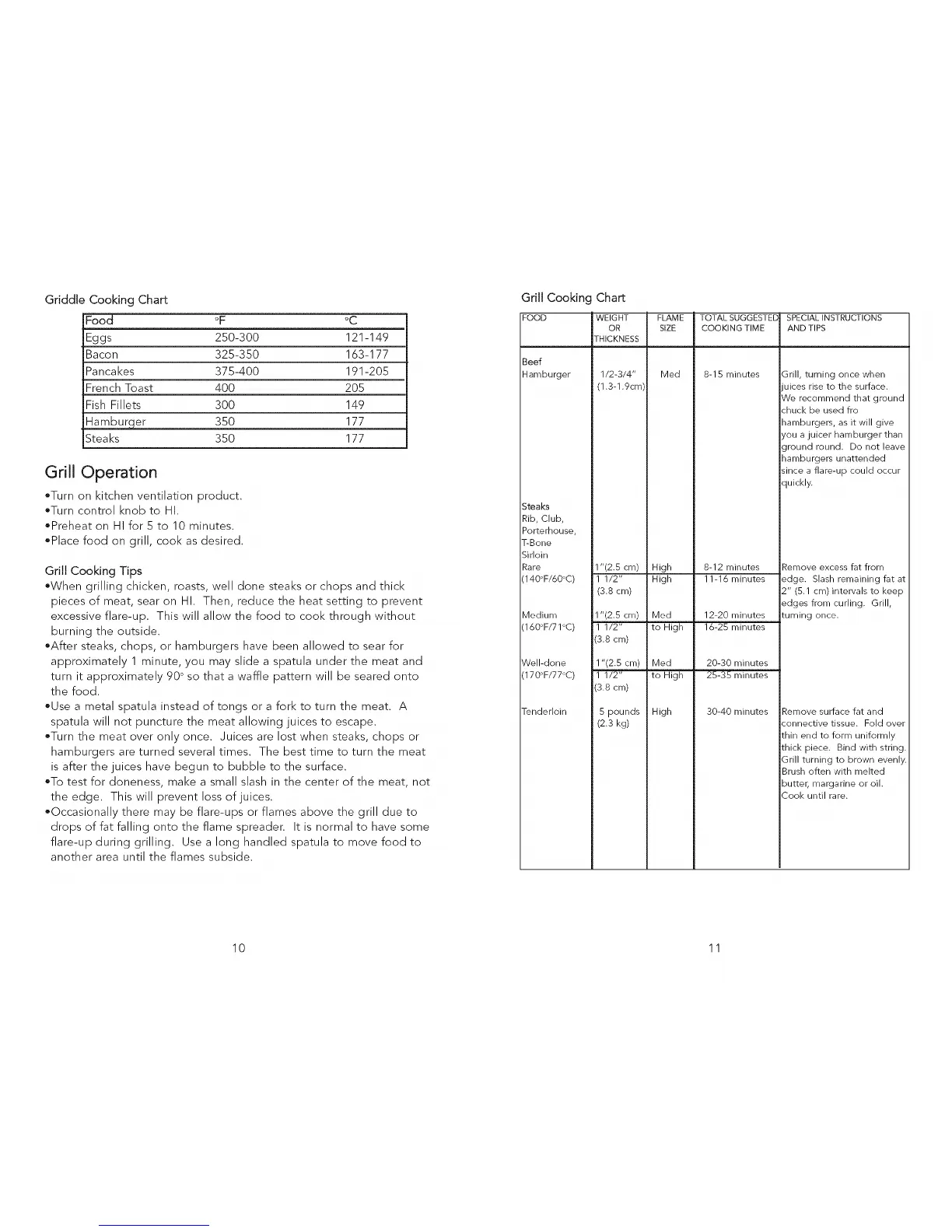 Griddle Cooking Chart