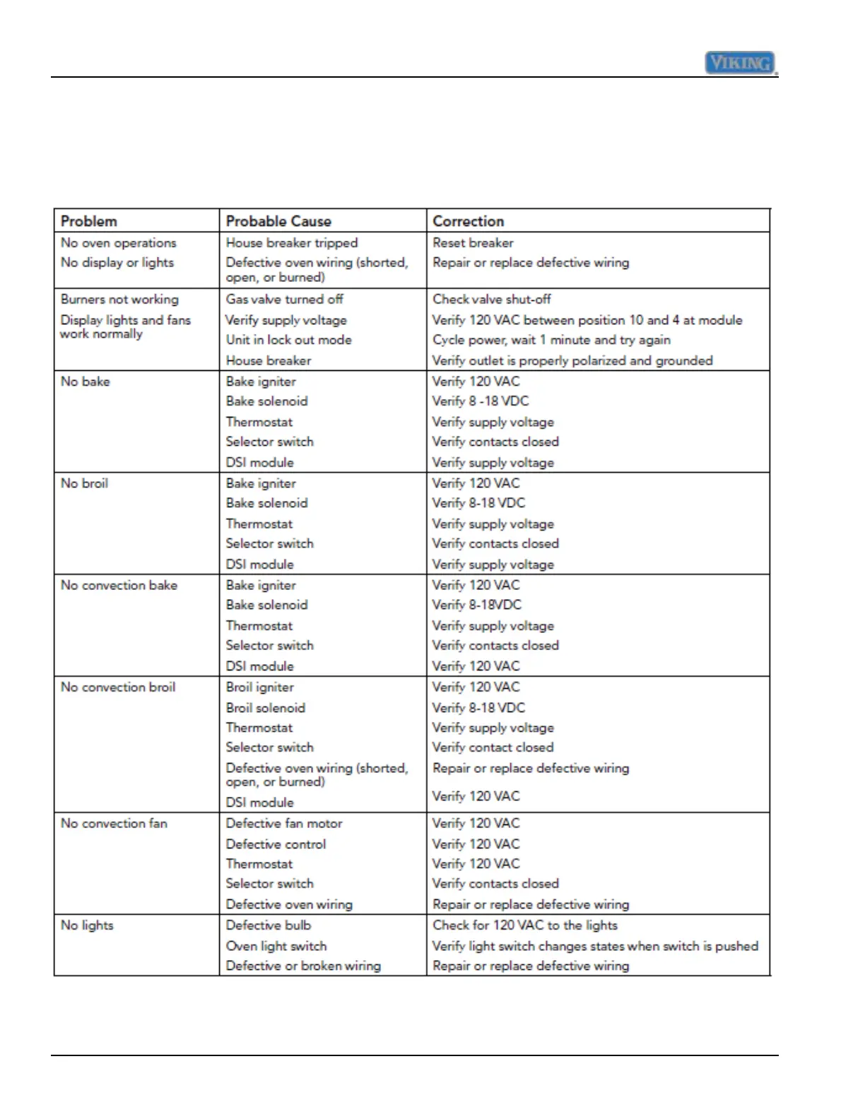 Viking VGSO100 - Troubleshooting Guide; Common Oven Problem Diagnosis
