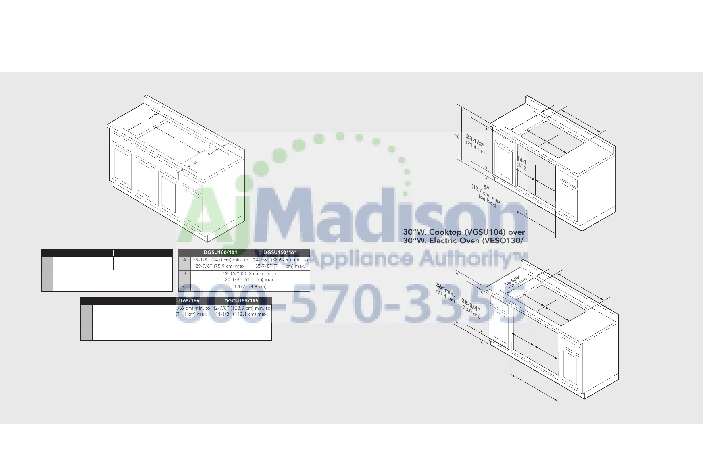 Cutout Dimensions (VGSU Cooktop over Single Electric Oven)