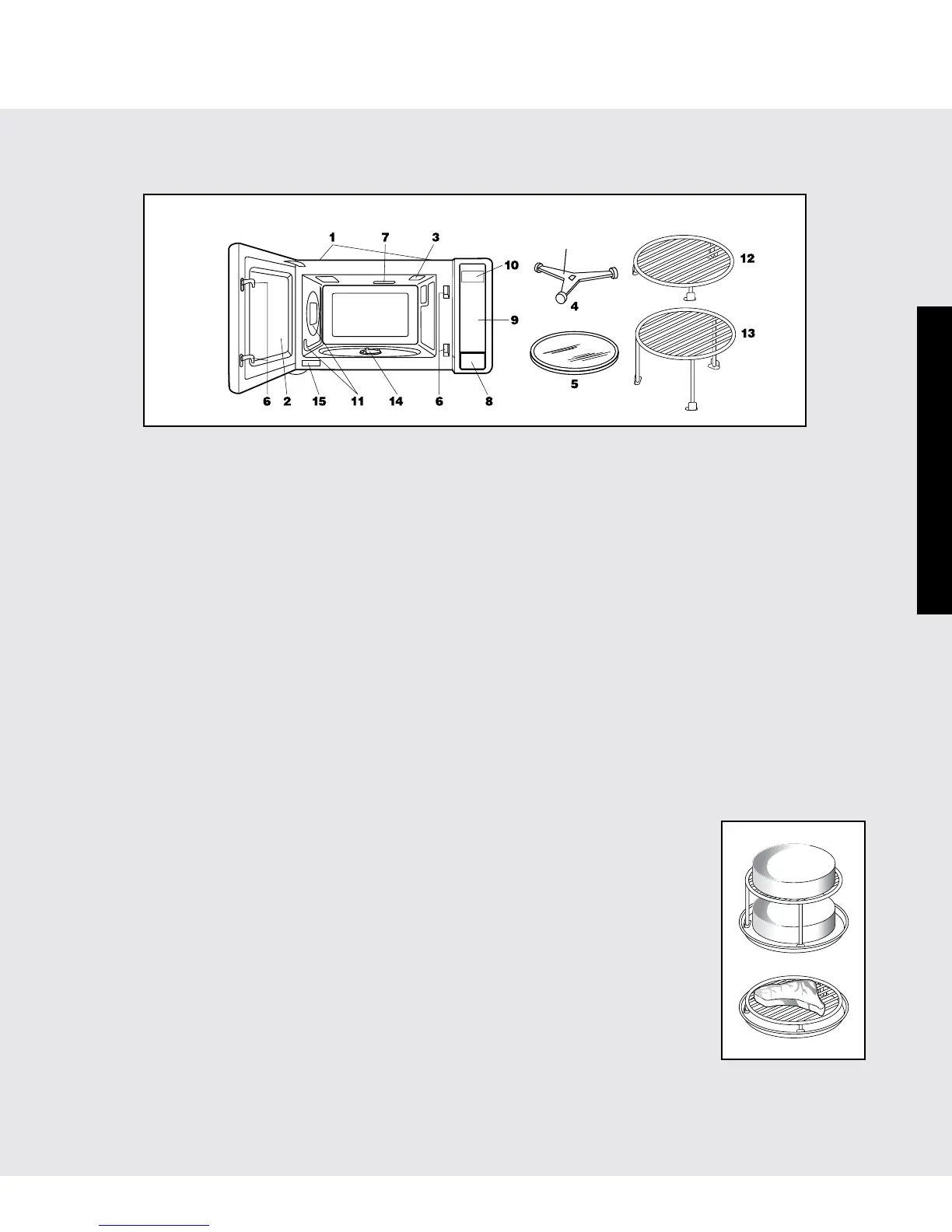 • Esta parrilla se coloca sobre la bandeja giratoria para cocinado de dos niveles, tales como