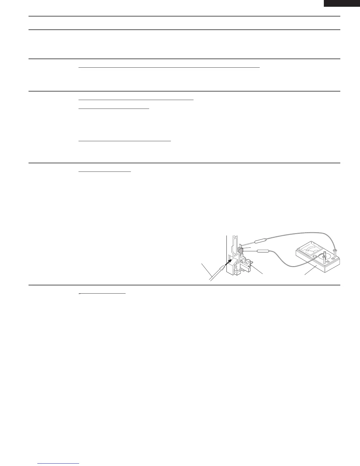 door opened (in this condition the plunger of the monitor switch is pushed in), the meter should indi-