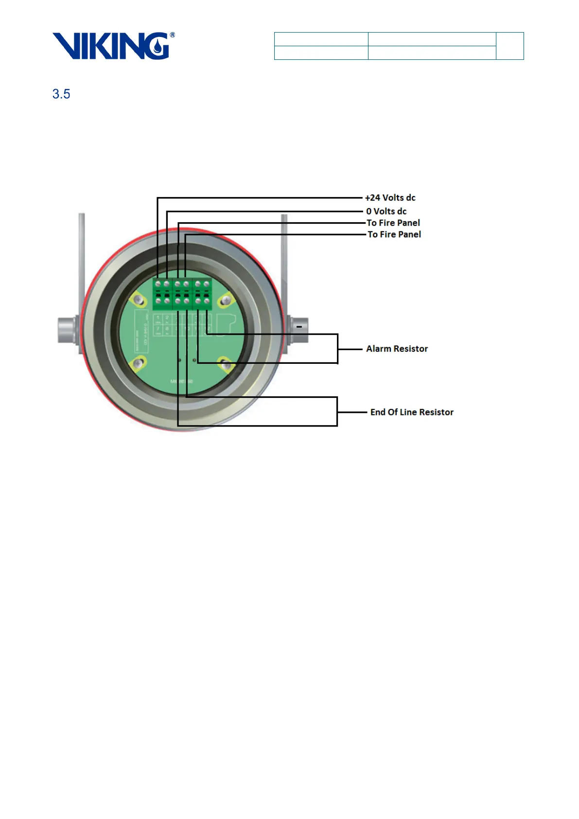 Reversal of polarity across terminals 1 & 2 enables Viking RS485 communication on terminals 3 &