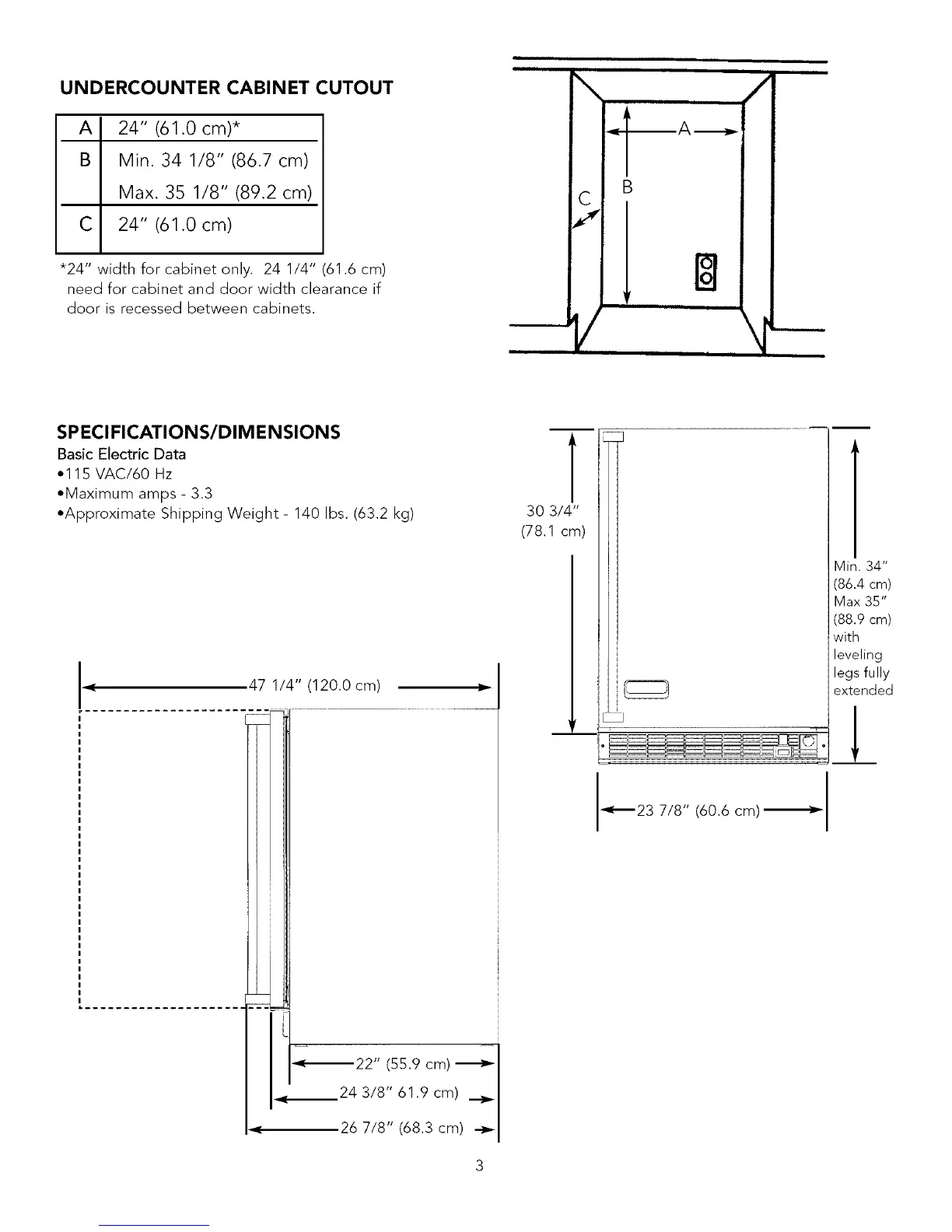 • Approximate Shipping Weight- 140 Ibs. (63.2 kg)