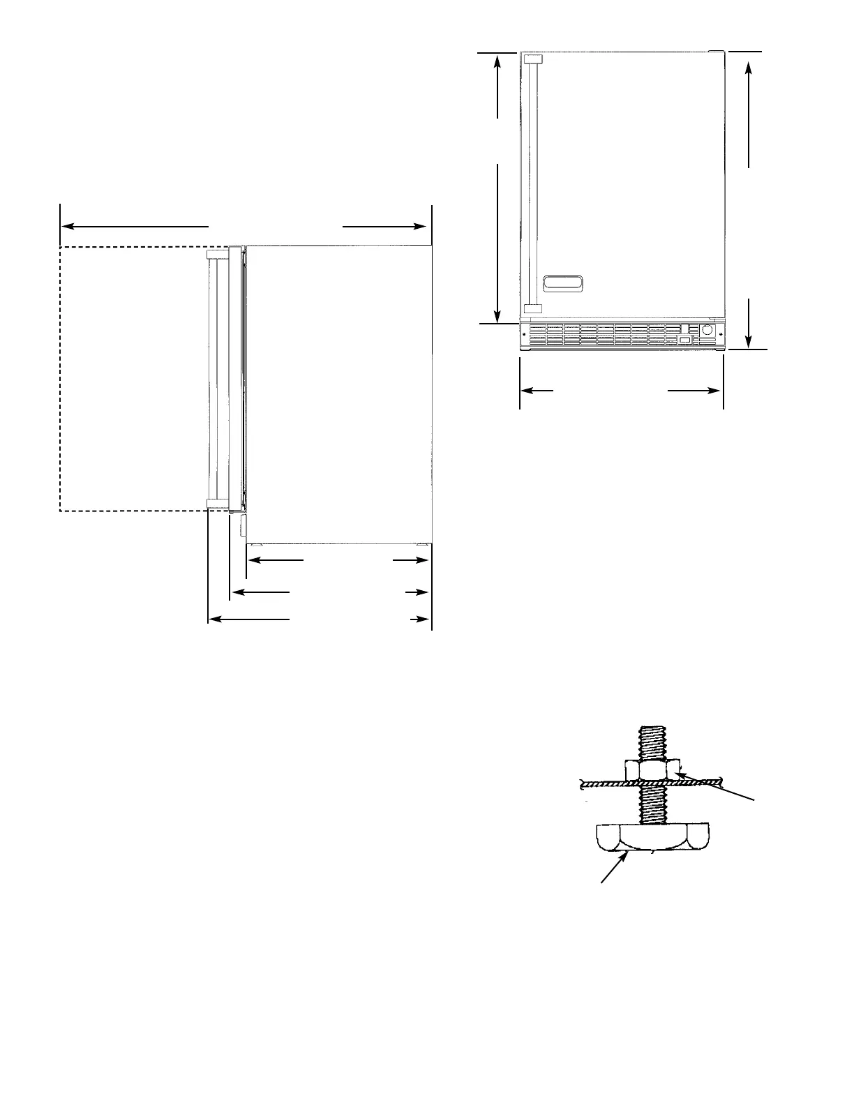 2. Screw front two (2) leg levelers into the weldnuts. Leg levelers should be