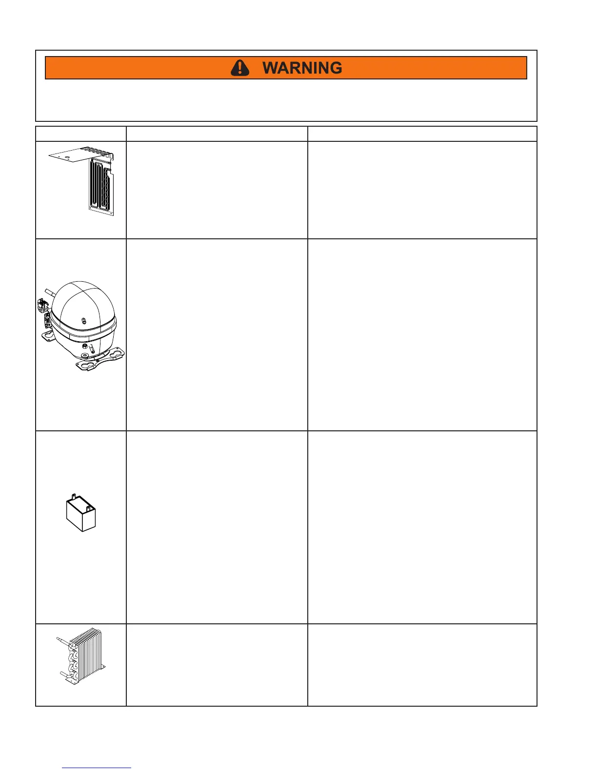 condenser ............................................... Ensure that there is no blockage of the intake •