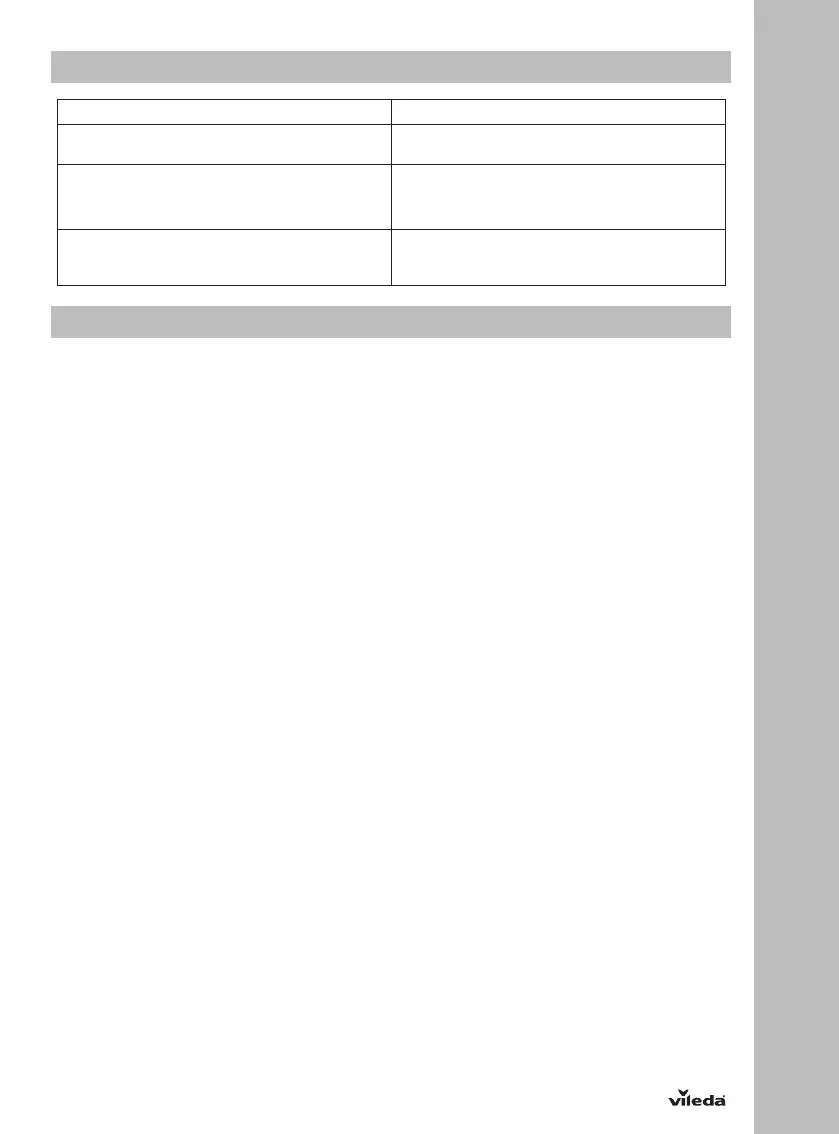 parcursul perioadei de garanie. Vileda poate refuza serviciul de garanie gratuită în cazul în care nu sunt