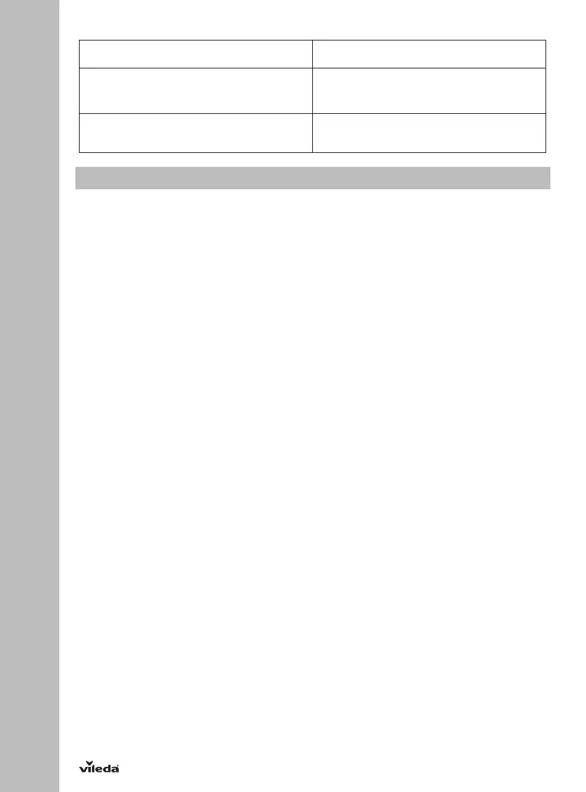 købsdato) på grund af materiale- eller produktionsfejl, vil Vileda eller et autoriseret serviceværksted i området