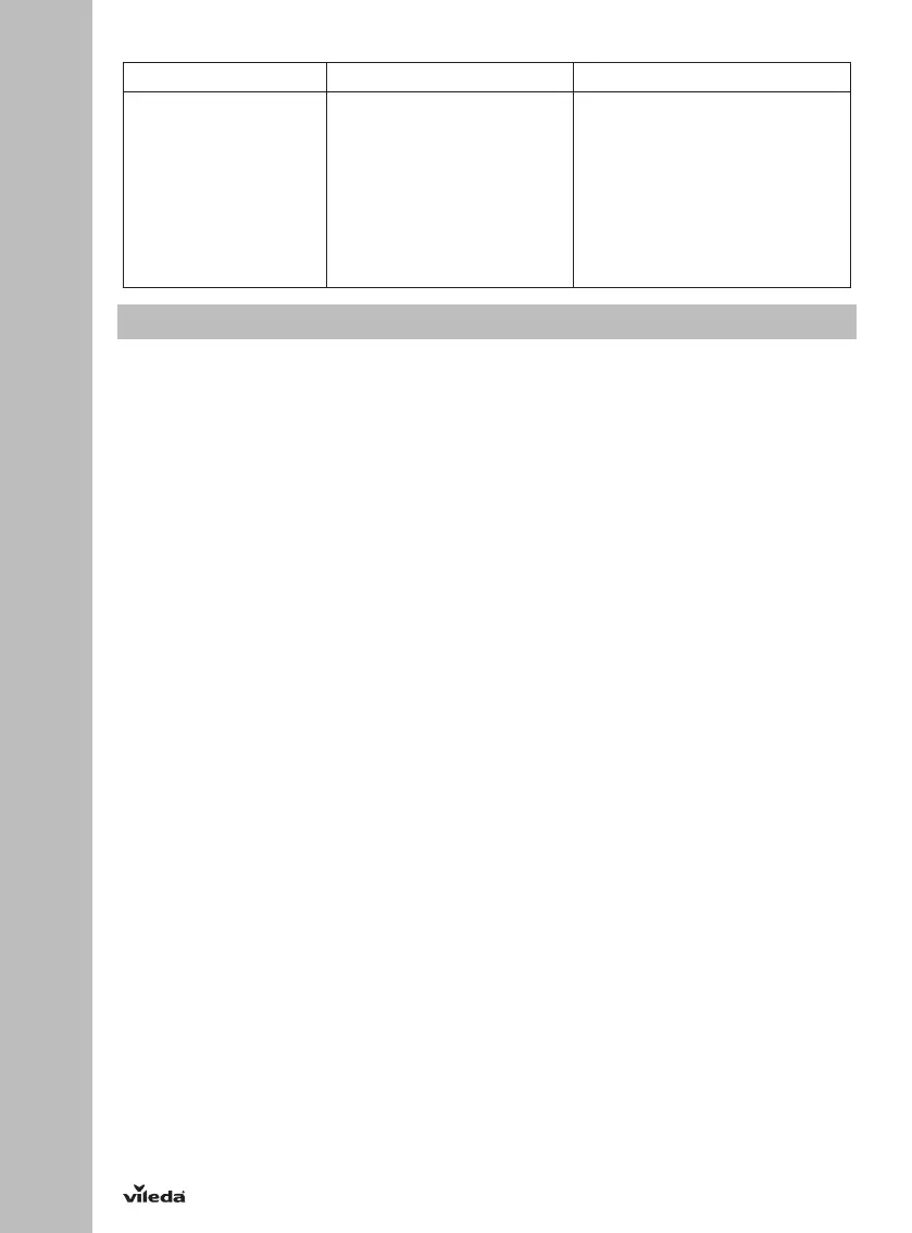 parcursul perioadei de garanție. Vileda poate refuza serviciul de garanție gratuită în cazul în care nu sunt