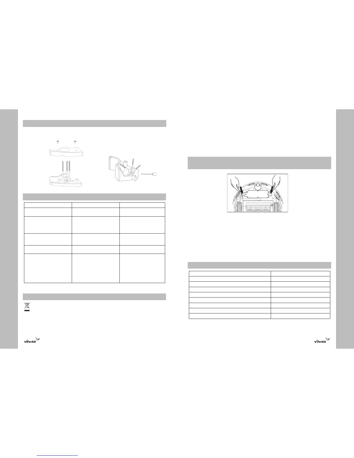 1. Spegnere Vileda Cleaning Robot e capovolgerlo su un piano.