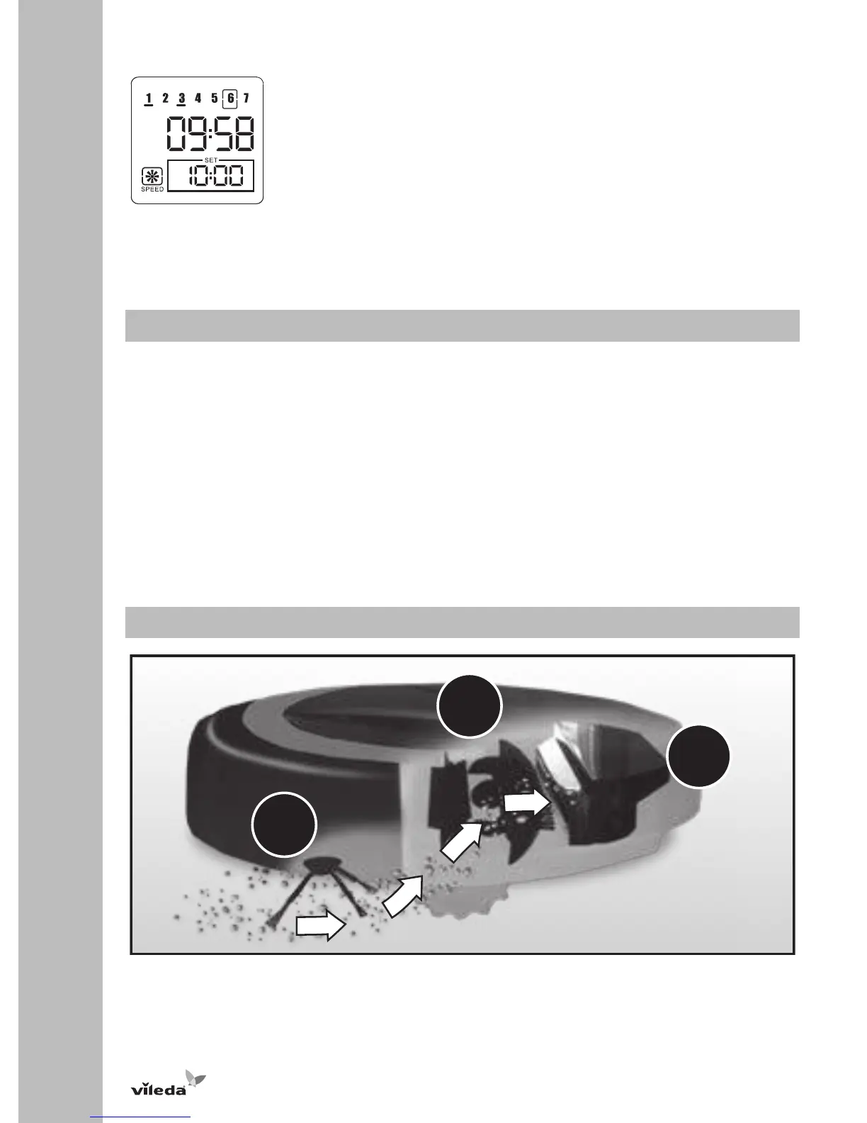2. Twee draaiborstels nemen vuil, haar en deeltjes op en voeren deze naar de vuilopvangbank.