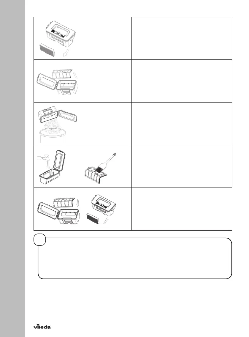 • Nemyjte vysoce účinný filtr nikdy vodou