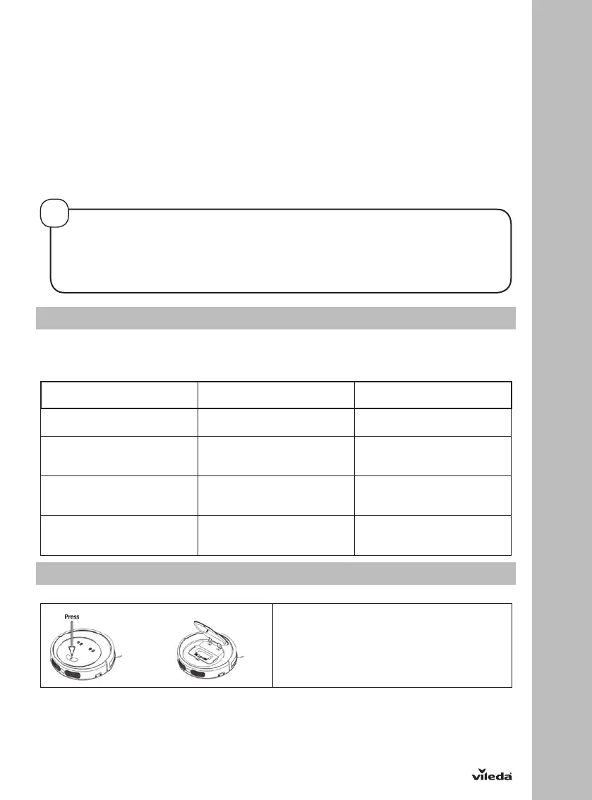 • Ak je prístroj naplánovaný, automaticky spustí upratovanie v čase, keď je hlavný vypínač zapnutý,