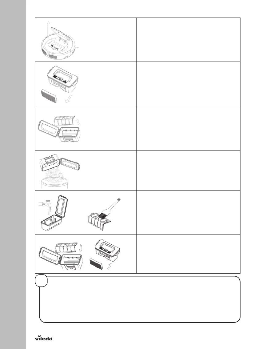 • Ponownie montuj pojemnik na kurz i filtr główny dopiero po całkowitym wyschnięciu.