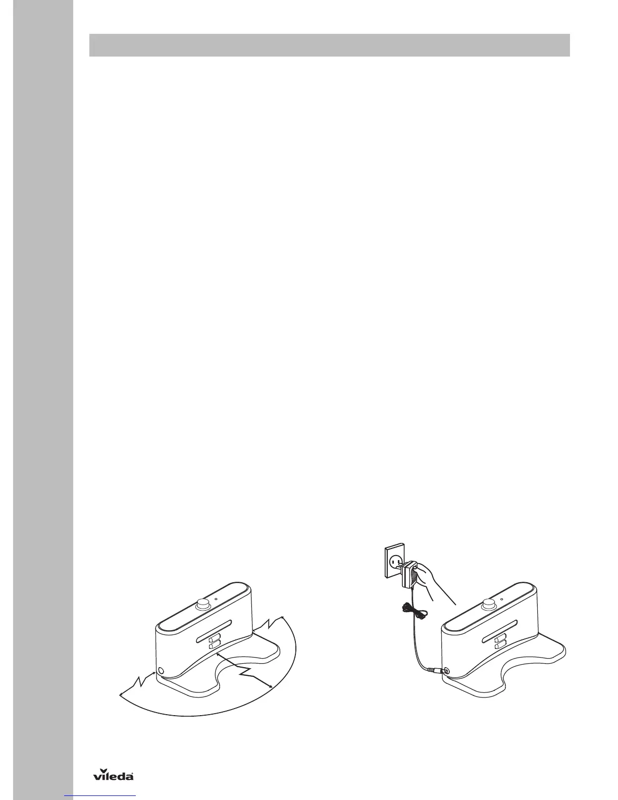 5. Ensure that the power cord is running alongside the wall, otherwise the robot could get entangled.