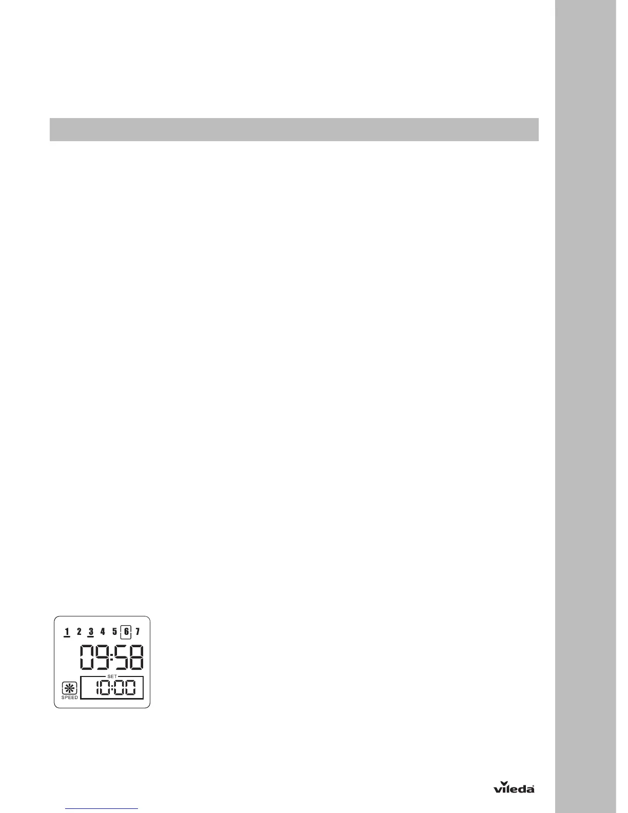 4. Use "up" and "down" button to adjust the cleaning time and to switch between weekdays.