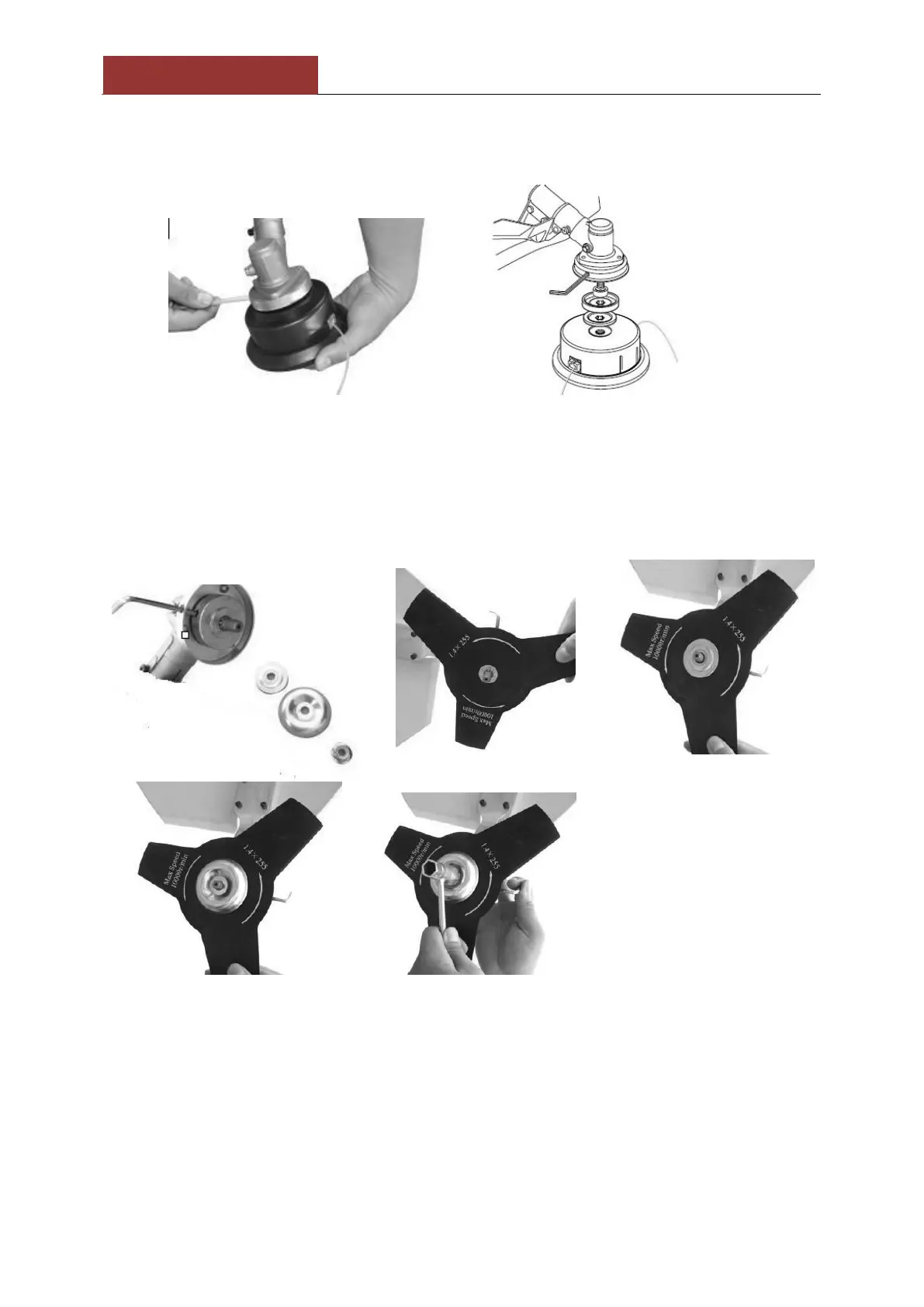 4.3 Namestitev rezila. Odvijte matico in odstranite zunanjo prirobnico. Namestite rezilo,