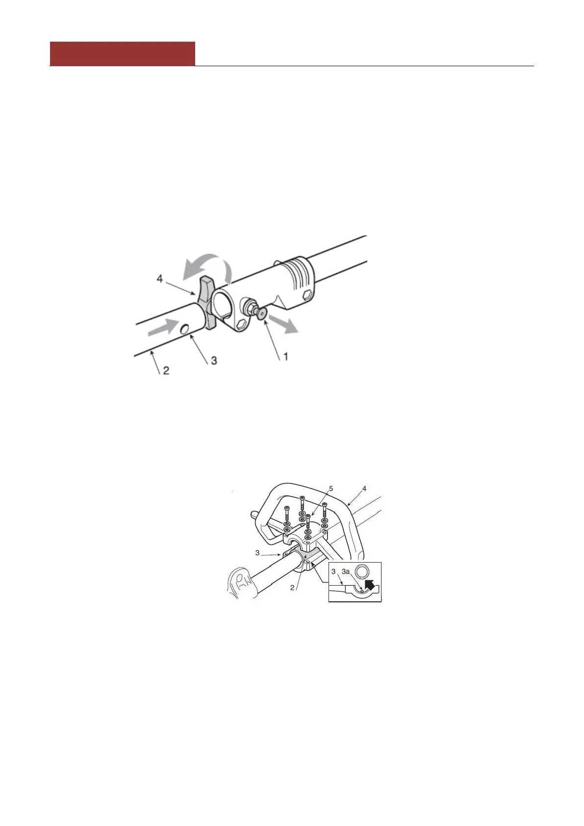 - Преди да затегнете винтовете (4), правилно приведете дръжката в съответствие с носещата тръба.