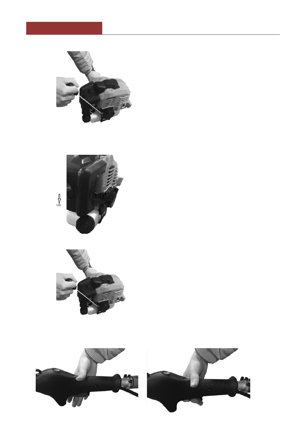 5. Издърпайте ръчката на стартера, докато не чуете звук, както е показано на фигурата по-долу.