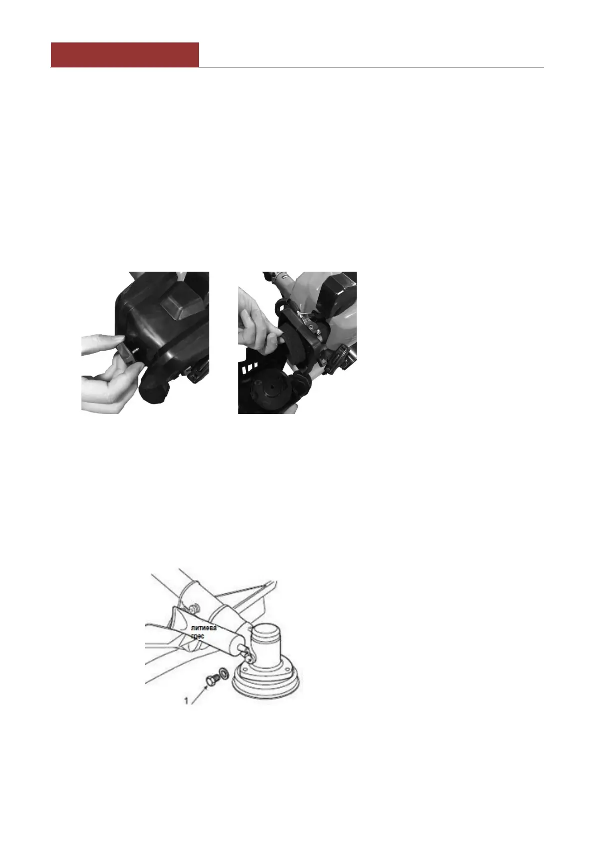 Смазвайте с литиева грес. Отстранете винта (1) и слагайте грес, ръчно въртете вала докато не се появи