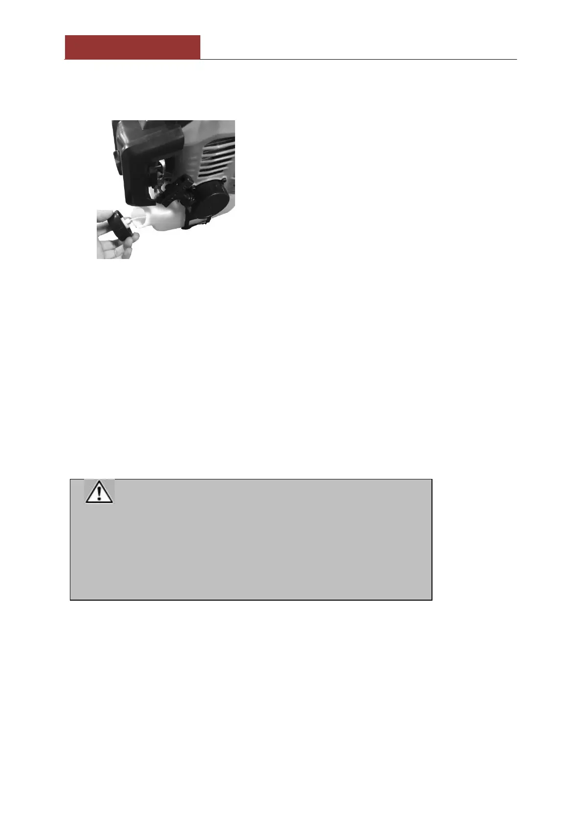OPOZORILO! Razlito gorivo takoj obrišite. Ne vklapljajte naprave, dokler razlito gorivo ne