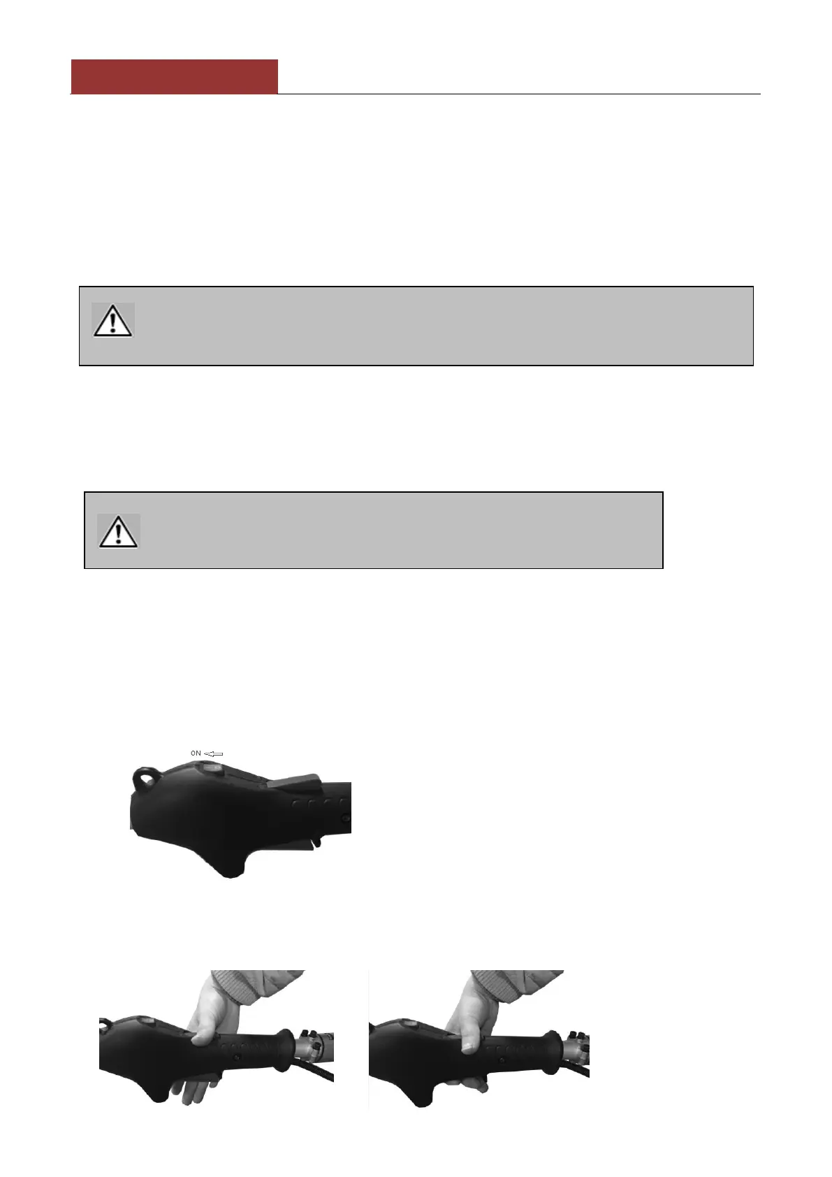 2. Halten Sie Verriegelungsheben und Gasknopf fest, drücken Sie die Taste halb offen nach unten, dann