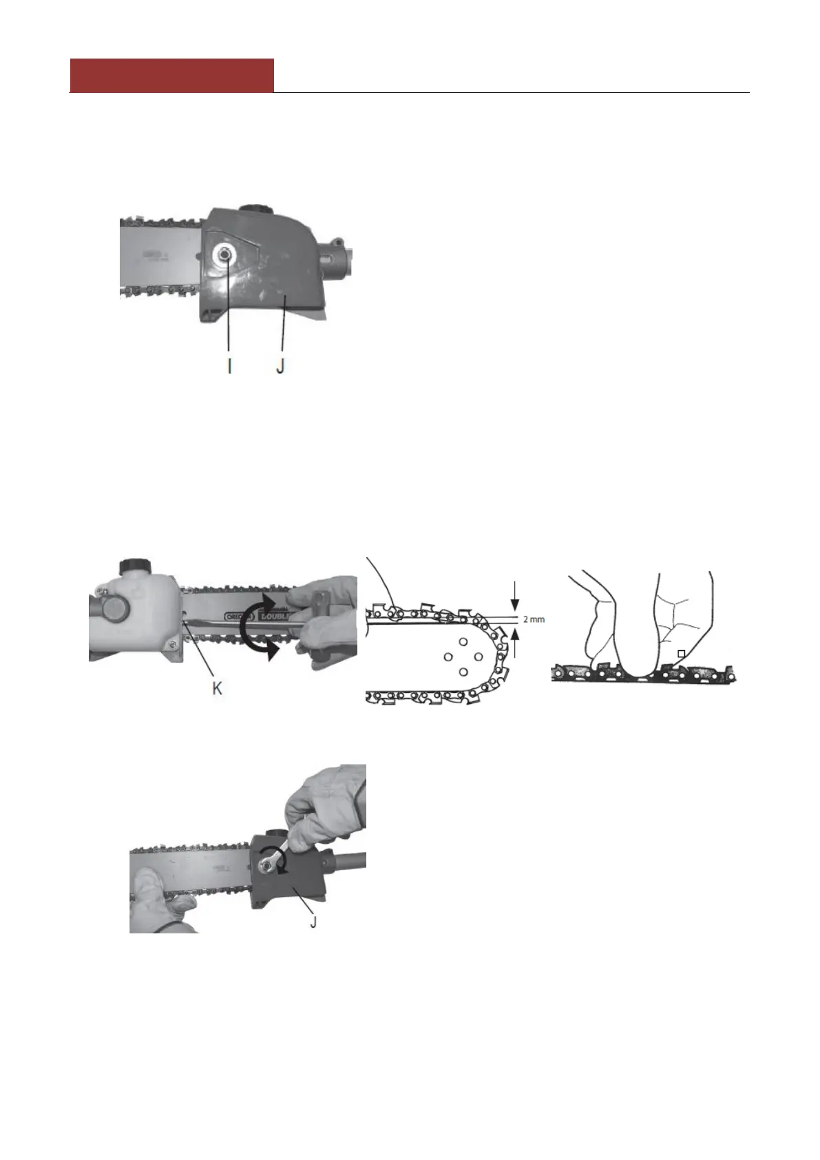 verringert die Dichtheit der Kette. Die Kette ist richtig gespannt, wenn sie mindestens 2 mm in der Mitte des