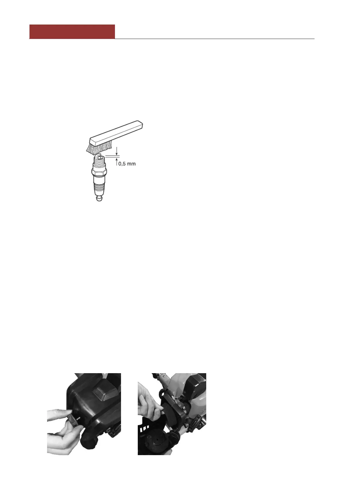 Entfernen Sie und reinigen Sie von Zeit zur Zeit die Zündkerze mit einer Metallbürste um alle