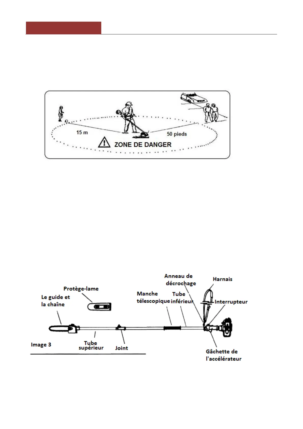 Il est interdit à toute personne non-utilisant l’appareil d’approcher la zone de danger d’un rayon de 15 m.