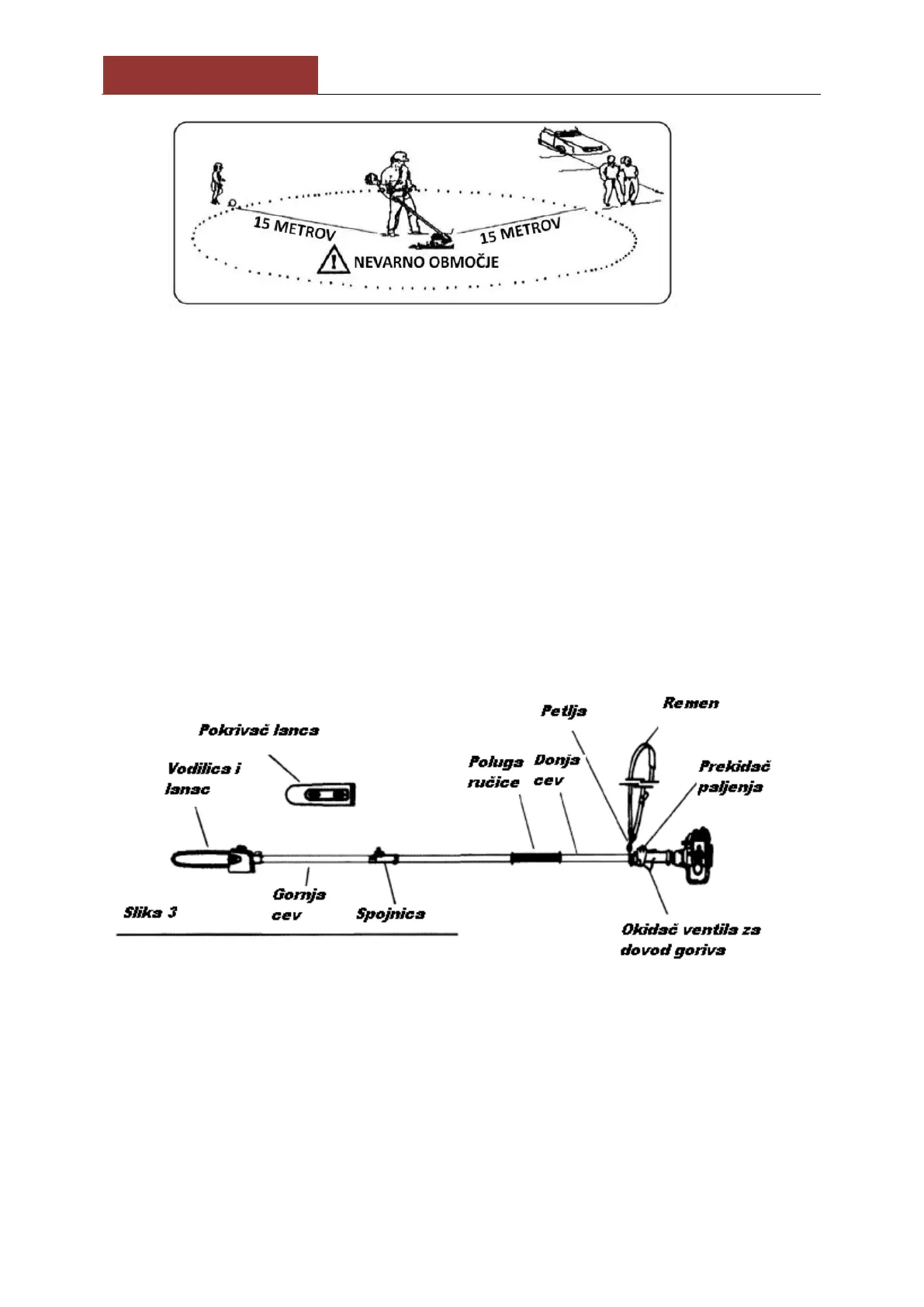 Uporabnik mora zagotoviti, da med delom v območju 15 metrov ni drugih oseb ali