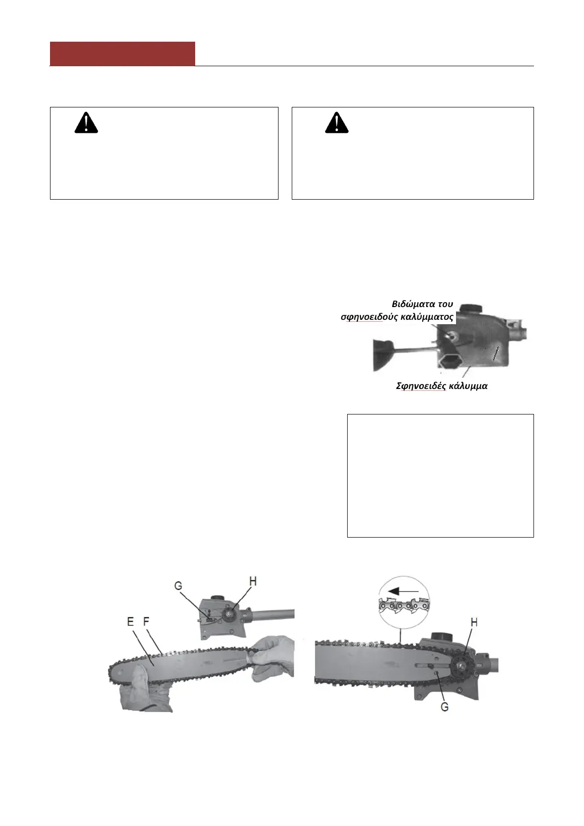 πλήρως τον οδηγό της αλυσίδας. Η βέργα του κόφτη πρέπει να συνδεθεί με τη βίδα για σύσφιξη της