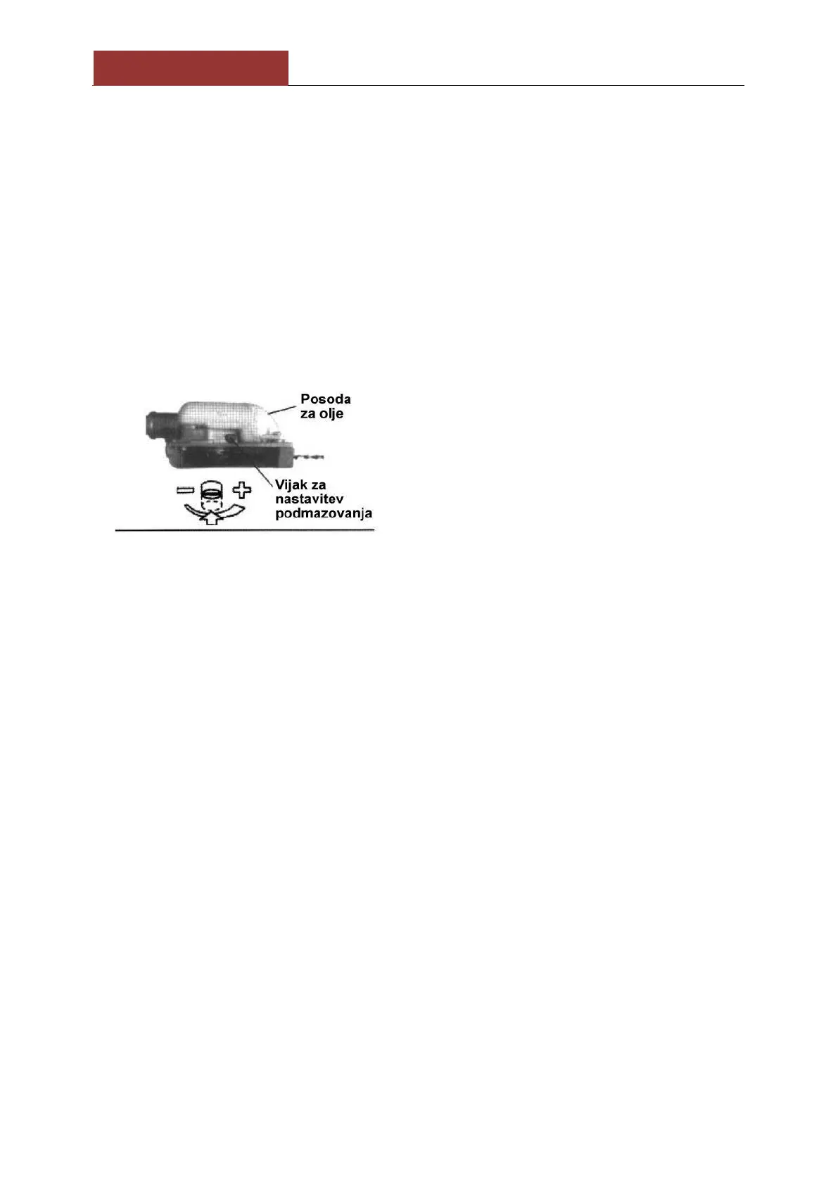 priporočamo večjo količino olja za podmazovanje. Količino olja lahko nastavite v skladu